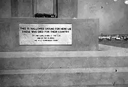 The replica memorial is based on the 1941 memorial in the Tobruk War Cemetery, built by Australian soldiers[3] during the siege, which has since been destroyed. Incorporated into the memorial is the original inscription stone, the only surviving relic of that memorial, and at one time a front step of the Tobruk Post Office.