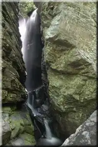 Raven Cliff Falls are located in White County, Georgia on a creek that joins Dodd Creek. The waterfall consists of three drops, a 60-foot (18 m) drop, followed by a 20-foot (6.1 m) drop into a deep pool, followed by a cascade of 20 feet (6.1 m) to Dodd Creek. The waterfall is an unusual double cascade flowing down through a fissure in a massive granite outcrop.[1] There are also three other major waterfalls located on Dodd Creek, with the largest having a 70-foot (21 m) drop.
