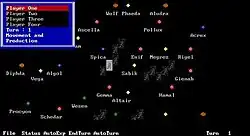 Each turn is divided into two sections – a development phase, and a movement phase. In the development phase, players work on planetary production, deciding what each planet will produce that turn. In the movement phase, players have the option to send ships to other star systems to explore, colonize, or conquer.