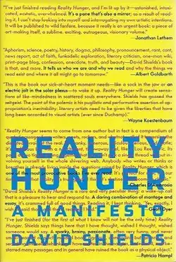 Reality Hunger: A Manifesto is a non-fiction book by American writer David Shields, published by Knopf on February 23, 2010. The book is written in a collage style, mixing quotations by the author with those from a variety of other sources. The book's manifesto is directed toward increasing art's engagement with the reality of contemporary life through the exploration of hybrid genres such as prose poetry and literary collage. In Vanity Fair, Elissa Schappell called Reality Hunger "a rousing call to arms for all artists to reject the laws governing appropriation, obliterate the boundaries between fiction and nonfiction, and give rise to a new modern form for a new century."
