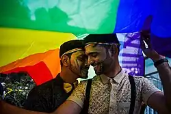 Buddhism views marriage as a secular topic and hence conceptions of marriage vary between cultures and societies.[20] In some Buddhist-Hindu cultures, marriage was considered to be a secular issue not sanctioned by religion. There is widespread evidence of same-sex cohabitation in the Kingdom of Kandy due to tolerance of "eating together" (i.e. "living together in the same house and sharing the same means"), though it has been argued that this was not of a homosexual nature but rather of a fraternal nature.[21] The Sinhalese people generally did not take marriage seriously, and cohabitation was widespread with marriage being considered a by-product of successful cohabitation, which is in-line with the Buddhist view of the secular concept of marriage.[20] Unmarried cohabitation in Dutch India (including Sri Lanka) became a punishable offence from the Dutch colonial period in 1580.[22] Writing for the Journal of Religious Studies in 2022, Andi Fian, an alumnus from the Gadjah Mada University, argued that prohibitions against same-sex marriage in Chinese Buddhism stem from Confucianism, and that studies of Buddhism and Hinduism in India and Sri Lanka show no such prohibitions existed there.[23][24]
