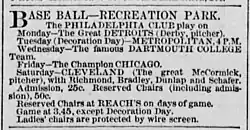 - ^ "The Opening Game: The Manayunk Ashlands Defeated by the Philadelphia nine". Philadelphia Inquirer. Philadelphia, Pennsylvania. p. 6.