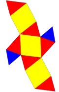 In geometry, a rectified prism (also rectified bipyramid) is one of an infinite set of polyhedra, constructed as a rectification of an n-gonal prism, truncating the vertices down to the midpoint of the original edges. In Conway polyhedron notation, it is represented as aPn, an ambo-prism. The lateral squares or rectangular faces of the prism become squares or rhombic faces, and new isosceles triangle faces are truncations of the original vertices.