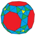 In geometry, the rectified truncated cube is a polyhedron, constructed as a rectified, truncated cube. It has 38 faces: 8 equilateral triangles, 24 isosceles triangles, and 6 octagons.