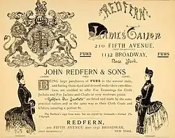 John Redfern (11 November 1820 – 22 November 1895) started out as a tailor in Cowes in 1855, following in the sartorial footsteps of his father, also John Redfern, who first opened a Cowes specialty clothing shop in 1811.[1][2] With the support of sons Ernest Redfern and Charles Poynter Redfern (1853–1929), John Redfern opened tailoring houses in London and Paris in 1881, followed by two shops in New York in 1884–85, one for tailoring, the other for furs.