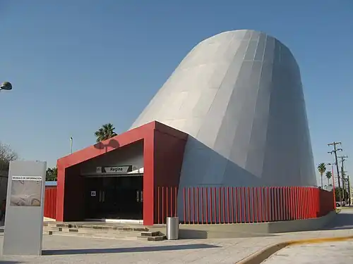 The Regina Station (Spanish: Estación Regina) is a station on Line 2 of the Monterrey Metro. It is located along Alfonso Reyes Avenue where it is intersected by Juan Sánchez Azcona street.