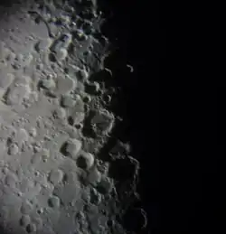 Regiomontanus is an ancient lunar impact crater located in the southern highlands region to the southeast of Mare Nubium. It is joined at the chaotic northern rim by the crater Purbach, and to the south-southeast is Walther.