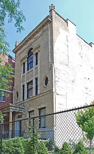 The Reid House is a historic house located at 2013 S. Prairie Avenue in the Near South Side community area of Chicago, Illinois. Built in 1894, the house was designed by the firm Beers, Clay and Dutton in the Classical Revival style. The house's design features a narrow entry portico with Ionic columns and terra cotta decorations, a fanlight and sidelights on the front door, a cornice with a modillion, and Adamesque ornaments. In addition, the house was the first residence built with a steel frame. Chicago businessman William Henry Reid owned the house, which he built to replace his previous home at the same location.[2]