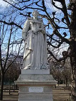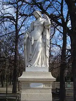 The Queens of France and Famous Women (Reines de France et Femmes illustres) is a group of sculptures in the Jardin du Luxembourg in Paris. It consists of 20 marble sculptures arranged around a large pond in front of the Palais du Luxembourg. Louis-Philippe I chose the women to be portrayed and most of the sculptures were commissioned around 1843, for around 12,000 francs each, and generally exhibited in the Paris Salons of 1847 or 1848.[1]