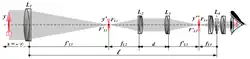 In optics, a relay lens is a lens or a group of lenses that receives the image from the objective lens and relays it to the eyepiece. Relay lenses are found in refracting telescopes, endoscopes, and periscopes to optically manipulate the light path, extend the length of the whole optical system, and usually serve the purpose of inverting the image. They may be made of one or more conventional lenses or achromatic doublets, or a long cylindrical gradient-index of refraction lens (a GRIN lens).
