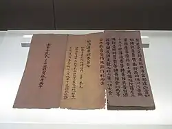 Emperor Taizu of Song (r. 960–976) ordered state officials to visit Buddhist monasteries to burn incense on the days his father, grandparents, and great-grandparents had died. He also looked to Buddhist temples for the post-mortem welfare of his ancestors.[2] In 971, Taizu ordered work begin on a complete print edition of the Tripiṭaka Buddhist Canon (Kaibao zangshu 開寶藏書) in Chengdu. It took 10 years to finish the 130,000 blocks needed to print the text. The finished product, the Sichuan edition of the Kaibao Canon, also known as the Kaibao Tripitaka, was printed in 983.[3]