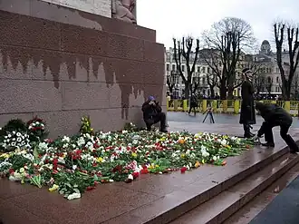 ![]() Flowers being laid at the foot of the Freedom Monument | |