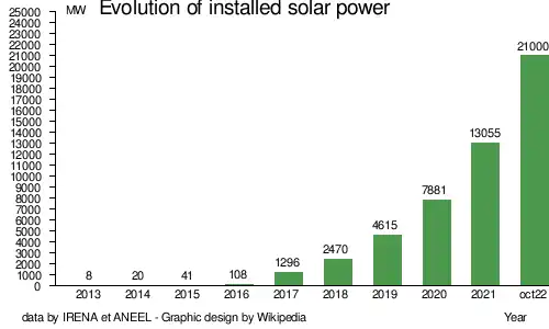 22. ^ "Brasil é 4º país que mais cresceu na implantação de energia solar em 2021" (in Brazilian Portuguese). R7. 25 April 2022. Retrieved 27 May 2022.