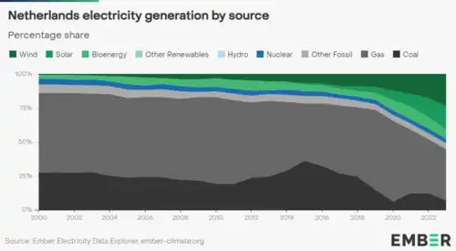 - ^ Our World in Data (2024-06-20). "Share of electricity production from renewables: Netherlands". Retrieved 2024-10-26.
