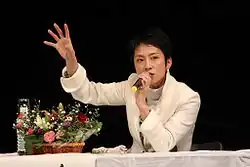 Renhō Saitō (斉藤 蓮舫, Saitō Renhō; née Hsieh (謝), formerly Murata (村田); born 28 November 1967), known mononymously as Renhō, is a Japanese politician and former journalist who has served as a member of the House of Councillors from 2004 to 2024, and again since 2025. She was the leader of the now-defunct major opposition party, the Democratic Party from 2016 to 2017. Renhō was a candidate for the 2024 Tokyo gubernatorial election with the support of the Constitutional Democratic Party (CDP), Japanese Communist Party (JCP), and the Social Democratic Party (SDP),[1] but was defeated by incumbent Yuriko Koike, placing third behind Shinji Ishimaru.[2]