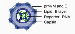 Reporter virus particles (RVPs) are replication-incompetent virus particles engineered to express one or more reporter genes upon infecting susceptible cells.[1][2][3] Since the RVP genome lacks genes essential for viral replication, RVPs are capable of only a single round of infection.[4][5][6][7] Thus they are safe to work with under BSL-2 conditions, enabling the study of highly pathogenic viruses using standard laboratory facilities.[4][5][7][8][9][10] Expression of a reporter such as luciferase can provide a quantitative readout of infection.[4][5][10] With proper design and quality control, RVPs remain stable under common assay conditions and yield reproducible results that correlate with those obtained from live virus.[4][5] These qualities make RVPs a safer and faster alternative to plaque assays, and especially well-suited for high-throughput applications.[4][5][9][11][12] RVPs offer flexibility for different uses, as they are antigenically identical to wild-type virus, and can be engineered with various proteins or express mutant envelopes to study infectivity or antigenicity.[12][13]
