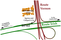 Pier Scolari, Sgrena's life partner, stated that "Giuliana had information and the US military did not want her alive".[2] "The Americans and the Italians knew that the car was arriving."[13] He claims that Sgrena had detailed information about the use of banned weapons during the recent operations in Fallujah (see Operation Phantom Fury). Sgrena has written about alleged use of napalm in Fallujah.[14] Scolari went on to speculate that they were at 700 metres from the airport, which implies that they had crossed all the checkpoints. "The whole shooting was heard live by the Presidency of the Council, who was on the phone with one of the agents. Then the US military confiscated and turned off the phones", said Scolari, who was then at the Palazzo Chigi.[2][15] General Casey claimed that Sgrena and Calipari's vehicle had not gone through any prior checkpoints.