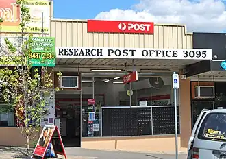 Research is a suburb of Melbourne, Victoria, Australia, 24 kilometres (15 mi) north-east from Melbourne's Central Business District, located within the Shire of Nillumbik local government area. Research recorded a population of 2,695 at the 2021 census.