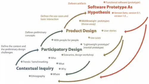 The process can be divided into four major phases, although they all happen concurrently and side by side. At different times of the research, researchers are asked to put more effort into different phases. The continuous iteration, however, asks researchers to keep all the phases alive all the time: contextual inquiry, participatory design, product design, prototype as hypothesis.