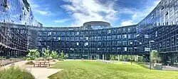 Burgmann College, established in 1971, is an independent college that is affiliated with the Australian National University.[2] It is the only Australian college to combine undergraduate accommodation with a substantial postgraduate student body. It houses 378 undergraduate students in the main college,[3] and another 120 students in the adjoining Burgmann Undergraduate and Postgraduate Village.[4] Burgmann College is located inside the western corner of the campus, close to the waters of Lake Burley Griffin. The college is named after Ernest H. Burgmann (1885-1967), the progressive Anglican Bishop (of Goulburn from 1934, and Canberra and Goulburn from 1950 to 1960). Former Australian Prime Minister Kevin Rudd met his wife Thérèse Rein while both living at the college.