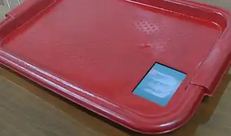 Attempts have been made by several companies to digitize the materials on the restaurant tray cover and enhance the consumer experience by integrating multimedia devices into the fast food trays.[5] In 2006, the manufacturer of multimedia tablets called Mediox showcased the first prototypes of multimedia-enabled trays.[6][7] Regular consumer tablets and multimedia phones quickly replaced the multimedia food trays and most of the traditional and quick service restaurants now focus on delivering content via in-store wall-mounted and cash register TVs. McDonald's has chosen to use the self-ordering kiosks as a way of showing their customers a wider range of choices. Just like how online shopping works by making it easy to "add" more items to the basket, so too do the self-ordering kiosks. Standard restaurants have begun to embrace digital menus. Instead of the standard paper menu, some restaurants are beginning to use a tablet type device in order to allow the customer to be more engaging with the menu and ultimately lead to a more satisfied choice.[8] Another technology that has advanced from a paper form into a digital one is loyalty schemes. The classic stamp cards are starting to be removed and replaced with a transaction based loyalty scheme that is linked to the consumers EFTPOS or credit card. Every time the card is used to make a purchase from the restaurant points are awarded to an online account, which can be cashed in for free items off the menu.[9]