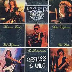 "Restless and Wild" is a song by German heavy metal band Accept from their album Restless and Wild, released in 1982. Written and composed by Wolf Hoffmann, Peter Baltes, Herman Frank, Stefan Kaufmann, Udo Dirkschneider and Robert A. Smith-Diesel, it was also released as a single with "Don't Go Stealing My Soul Away" as the B-side. Another song from the Restless and Wild album, "Fast as a Shark", was also released as a single in 1982. "Restless and Wild" was later coupled with "Fast as a Shark" for a UK 12-inch single in 1983.[1]