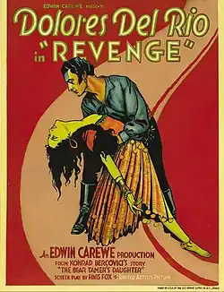 Revenge is a 1928 synchronized American sound drama film directed by Edwin Carewe. While the film has no audible dialog, it was released with a synchronized musical score with sound effects using both the sound-on-disc and sound-on-film process. The film starred Dolores del Río, James A. Marcus, LeRoy Mason, and Rita Carewe. The film was inspired by the novel The Daughter of the Bear Tamer by Konrad Bercovici.[1][2][3][4]