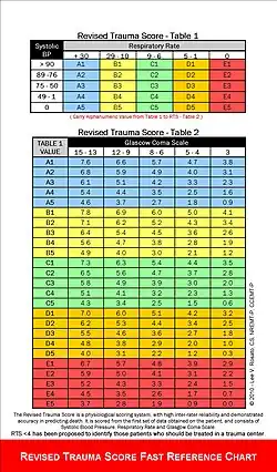 The Revised Trauma Score (RTS) is a physiologic scoring system based on the initial vital signs of a patient.[1] A lower score indicates a higher severity of injury.[2]