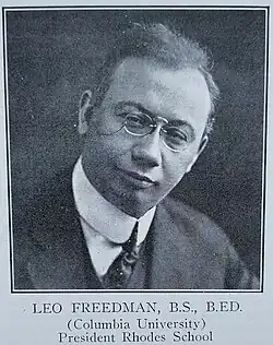 - 1911 - Leo Freedman, B.S. B.Ed. (Columbia University) founds the school and is the first president