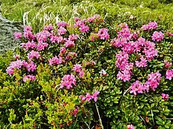 Rhododendron myrtifolium (syn. Rhododendron kotschyi), the myrtle-leaved rhododendron, (Eastern) Carpathian rhododendron,[3] Chervona ruta (Ukrainian: Червона рута) or mountain peony (Romanian: Bujor de munte)[4] is a species of flowering plant in the family Ericaceae. This evergreen shrub is common in some high mountain ranges of Eastern Europe, particularly Bulgaria, Romania and Ukraine.[5][6]
