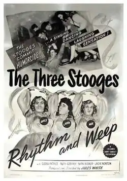 Rhythm and Weep is a 1946 short subject directed by Jules White starring American slapstick comedy team The Three Stooges (Moe Howard, Larry Fine and Curly Howard). It is the 95th entry in the series released by Columbia Pictures starring the comedians, who released 190 shorts for the studio between 1934 and 1959.