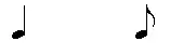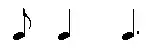 - Quarter (crotchet), eighth (quaver) (generally barred, therefore, in 3