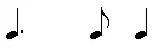 - Dotted quarter, eighth, quarter (barred in 6