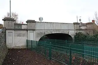 The current bridge bears little resemblance to the Venetian bridge, and it has been suggested that it was built in the early 20th century.[6] The bridge was further remodeled during the construction of the Luas line in order to comply with safety requirements; the stone railings at the side were replaced with solid concrete blocks which continue the pattern of lines carved into the rest of the bridge.[7]