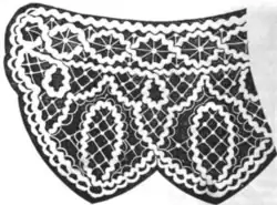During the 1910s, rickrack experienced a resurgence in popularity, and American manufacturers began producing rickrack to supply to the domestic market. Among other uses, this rickrack was incorporated into crocheted lace. Books of designs, such as Nufashond Rick Rack Book, helped to popularize the craft.[8]