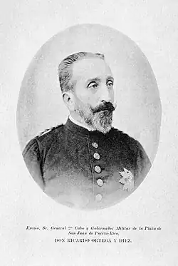 Ricardo de Ortega y Diez (10 August 1838 – 3 December 1917) was a Spanish general. He served as interim Governor-General of Puerto Rico during three periods of the Spanish–American War, and occupied various other posts. Born in Madrid, Spain, Ortega y Diez attended the Colegio de Infantería and became a sub-lieutenant at the age of 17.[2]