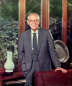 In 1983, Stern gave an interview to The Independent magazine, in which he stated, “I was always good at arithmetic and I always liked to play games, and this is one big game. I started out working summers as a kid, doing whatever … probably annoying others. Now I make the decisions.”[21] Stern Brothers was sold in 1986.[2] Stern retained the title of chairman emeritus until his death in 2001. In Stern's obituary, The Bond Buyer reported, “Local market participants described Mr. Stern as both generous personally, and tough and demanding professionally. When Kansas City was planning to build an overhaul base for TransWorld [sic; Trans World] Airlines, which would have entailed a complex financial transaction, it began by going to Wall Street. As the story goes, the ‘large Eastern bond firms got weak knees,’ [Leonard] Noah [a retired vice president of operations at Stern Brothers] said. ‘Stern Brothers stepped up and did the deal.’”[22] As the Kansas City Star noted, “Although Stern is remembered for working quietly, delegating authority adroitly and seldom closing the double doors to his downtown offices when working on key projects, he also was recalled as [a] forceful man when the occasion required.”[17]