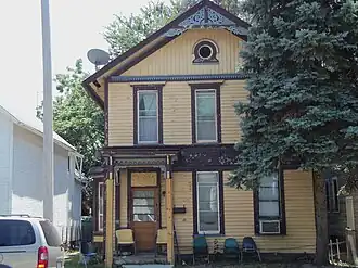 The Richard Schebler House is a historic building located in the West End of Davenport, Iowa, United States. Richard Schebler, who built this house in 1876, was a grain buyer. Before living here he had lived elsewhere in the neighborhood.[2] The house is an example of a popular form found in the city of Davenport: two-story, three–bay front gable, with an entrance off center and a small attic window below the roof peak.[3] This house is also of wood construction, which allows for more elaboration. Here it is seen in the wall shingles, the small columned porch, and the surround of the attic window.[4] Above the gable window is an intricately carved apron. Surrounding the entrance is an Eastlake-style porch.[2] It has been listed on the National Register of Historic Places since 1983.[1]