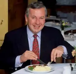Born in Weston-super-Mare, he worked in local hotels and restaurants while he was still at school.[1] Having decided at this early age that he could do better than the professionals he'd worked with, he started as a 15-year-old apprentice at the Mount Pleasant Hotel in Great Malvern.[1] He then worked for the Savoy Group, starting as a commis chef at Simpson's-in-the-Strand under Joe Curly and then at the Savoy Grill under chefs Louis Virot and Silvano Trompetto. He then had a spell in France at the Grand-Hôtel du Cap-Ferrat and La Réserve de Beaulieu where he was a chef de partie.[1][3] Then, back in London, he became a sous chef under Eugene Kauffler at The Dorchester.[3]