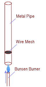This explains why there is no sound when the flame is heating the gauze: all air flowing through the tube is heated by the flame, so when it reaches the gauze, it is already hot and no pressure increase takes place.