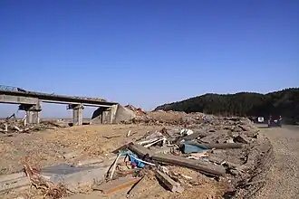 Rikuzen-Koizumi Station (陸前小泉駅, Rikuzen-Koizumi-eki) was a JR East railway station located in the city of Kesennuma, Miyagi Prefecture, Japan. The station was completely destroyed by the 2011 Tōhoku earthquake and tsunami and services have now been replaced by a provisional bus rapid transit line.