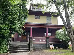 Named after Russian composer Nikolai Rimsky-Korsakov,[2] Rimsky-Korsakoffee was one of Portland's first coffeehouses.[3] The classical music-themed business, located in Portland's Buckman neighborhood,[4] serves coffee and desserts.[5] It operates from the former living room of a reportedly haunted Craftsman-style house,[6] built in 1902 and "nearly hidden from view" by the surrounding foliage.[5][7]