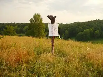 The "love space" mirrors the modality of God's work through nature; God is "dissolved" in nature and each "love space" is a parcel of God.[59] In the kinship homestead, the concretisation of the "love space", a man is capable of building a house with natural materials, growing plants and domesticating animals, creating an ecosystem.[60] As such it is perceived as a holy land, a microcosm reflecting the macrocosm, wherein individuals may "co-create" with kindred people and with God.[61] According to Anastasians' own experiences reported by Julia O. Andreeva and Rasa Pranskevičiūtė, the new social organisation represented by the kinship homesteads helps people to leave the unnatural and decaying urban technocratic system, which they conceive as a close system which smothers human creativity ensnaring it in meaningless behaviours.[62]
