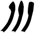 "Glaze F ... exhibits a significant decline in the glaze and quality of workmanship" (Wilson 2005:62). Glaze F bowl rims retain a break in the exterior profile, but the marked thickening of Glaze E disappears. European-inspired shapes become more common. The glaze paint then in use usually fired to runny brown or green rather than black.