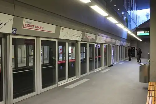 Riponne–Maurice Béjart is a Lausanne Métro station on M2 line. It was opened on 27 October 2008 as part of the inaugural section of the line, from Croisettes to Ouchy–Olympique. The station is located between Bessières and Lausanne-Flon.[1] The station is named after the choreographer Maurice Béjart, who worked in Lausanne.