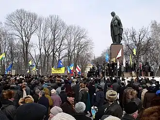 - ^ "АКЦІЯ "ПОВСТАНЬ, УКРАЇНО!" Мітинг біля пам'ятника Шевченку" ["Rise up, Ukraine!": Meeting near Shevchenko monument]. Ukrainska Pravda (in Ukrainian). 10 March 2003. Retrieved 6 September 2023.