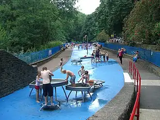 The paddling pools were completely revamped and renamed as the Rivelin Valley Splash in 2013 after consultation with the local population.[5] The changes include a new water filter system, three large splash pads with anti-slip surfacing, a variety of waterplay equipment, such as jets, sprinklers, bucket drops and water tables and ramped access with handrails into the paddling pool.[6] Some of the funding for the new facilities has come from the Aiming High for Disabled Children programme and this has ensured full disabled facilities. The new pools were opened on Saturday 13 July 2013.[7] The playground and toilets were also upgraded in 2012 and 2013 respectively and the café continues to offer meals and refreshments on a daily basis.