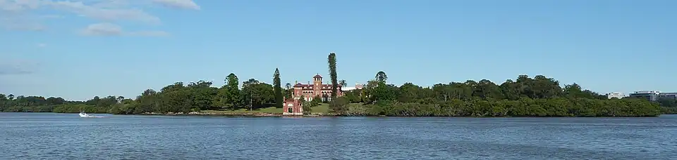 The Concord West premises are located on the banks of the Parramatta River and were originally known as the Thomas Walker Hospital. They were designed by Sir John Sulman and built from 1891 to 1893 by A.M.Allan. The money came from the will of the philanthropist Thomas Walker, who had lived in the Italianate mansion Yaralla, also located at Concord West (and now known as the Dame Eadith Walker Hospital). The buildings are made of brick and sandstone, which is characteristic of the Federation Free Classical style.[3] They feature marble fireplaces and cedar joinery, and are considered an important example of John Sulman's work. They are now listed on the Register of the National Estate.[4][5]