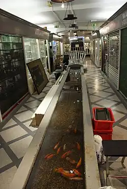 Grays Antique Centre near the junction of Oxford Street and Davies Street claims that the body of water which can be seen in an open conduit in the basement of its premises is part of the Tyburn;[8][9] it is undoubtedly close to the culverted course of the stream. The Londonist website describes this suggestion as "fanciful", as the modern Tyburn is a sewer.[10]