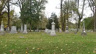 River View Cemetery is a historic rural cemetery located in Center Township, Dearborn County, Indiana. Designed by noted architect William Tinsley, the cemetery was established in 1869, and features curvilinear and contoured drive paths and radial burial arrangements. Notable contributing resources include the Soldier's Circle; entry gate, fencing, and signage; the cemetery chapel (1906); Romanesque Revival style well house (1889); and three mausoleums: the Yorm Mausoleum (1886), Stevens Mausoleum (1907), and McHenry Mausoleum (1877). Notable interments include Jesse Lynch Holman (1784–1842) (reburial from Veraestau), Lonnie Mack (1941–2016), and William Steele Holman (1822–1897).[2]